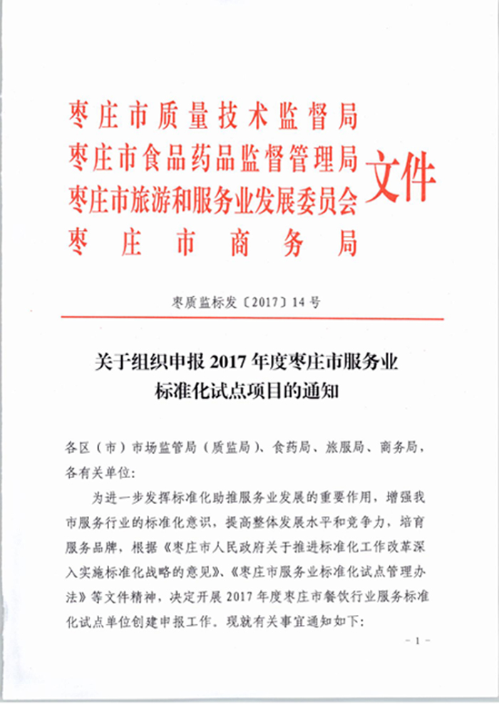关于组织申报2017年度潍坊市服务业标准化试点项