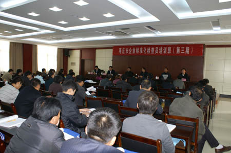 举办这次培训班的目的是进一步增强企业的标准化意识,促进企业建立健全企业标准体系,提高企业标准化管理水平,增强企业的整体素质,促使企业实现最佳经济效益和社会效益。参加培训的人员主要有分管企业标准化工作的领导和尚未取证的专职、兼职标准化检查员以及已经取得资格证书且有效期已满的标准化检查员。此次培训采用山东省质量技术监督局统一培训教材,统一培训师资,主要对标准化基础知识、产品标准编写知识、产品使用说明、标准化法律法规、企业标准体系的建立与运行等内容进行认真细致的讲解。为了让学员真正做到学以致用并对参加培训的人员进行了考试,考试合格将颁发由山东省质量技术监督局统一印制编号的《山东省标准化检查员资格证书》。