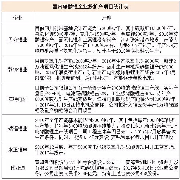 梳理2016年至今为止国内锂电企业碳酸锂投扩产项目(详见下表)发现,天齐锂业、赣锋锂业、瑞福锂业、永正锂业等企业都有相关项目在今年达产。接下来,碳酸锂价位如何走势最终还是取决于市场基本面的变化。