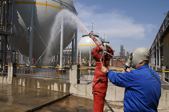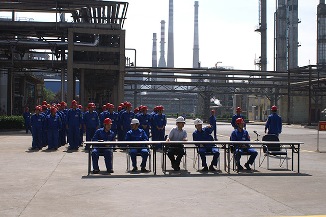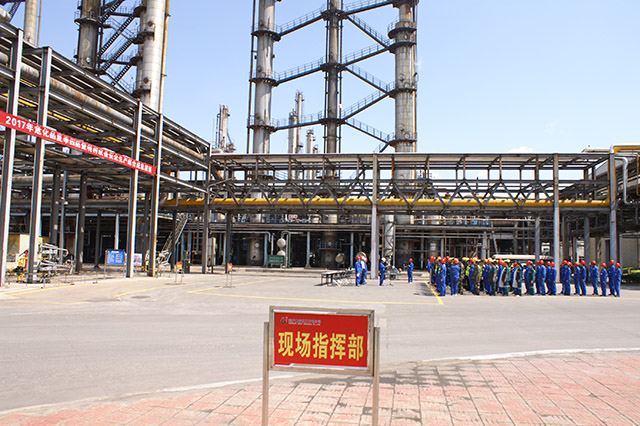 演练活动模拟了液化烃球罐区控制阀失控,导致罐内盐酸泄露,相关部门立即启动危险化学品事故应急救援预案,组织政府消防队、质监、安全、卫生等部门迅速赶赴现场联合企业应急分队实施堵漏、清理、人员疏散、现场警戒和抢救伤员等一系列应急处置措施。在各职能部门和企业应急分队的协同作战下,泄露口被成功堵住,稀释并回收了泄露的盐酸,一名被盐酸烧伤的工人被及时送往医院救治。