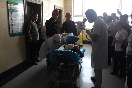 潍坊矿业集团中心医院有关行管人员、薛城区驻地所有电梯维护保养单位和部分使用单位的有关领导和专业技术人员观摩了本次演练活动。