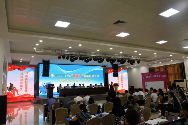 活动仪式上,滕州市委常委、副市长邹美帅对全市“质量月”活动启动表示祝贺,潍坊市质监局颜景运科长通报了2017年全市“质量月”重要活动安排,山东中科蓝天科技有限公司、山东威达重工股份有限公司做了典型交流发言。市质监局局长史峰、滕州市委常委、副市长邹美帅、潍坊出入境检验检疫局副调研员刘忠伟,共同开启了2017年全市“质量月”活动启动球。活动启动前,进行了质量品牌提升主题讲座,邀请山东大学质量管理博士吕杰,主讲了“先进质量管理理念和方法及品牌建设”的精彩讲座。
