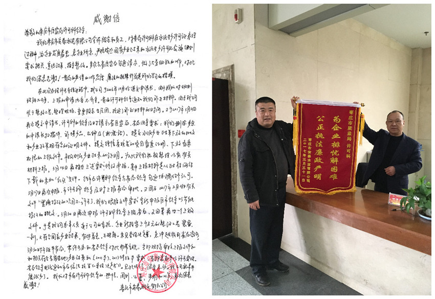 4月5日上午,潍坊市安泰水泥有限公司特地来到市行政服务中心质监局窗口,将锦旗和感谢信送到窗口,感谢质监局窗口为企业排忧解难,特事特办。